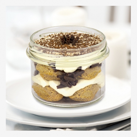 Pyszny, delikatny, śmietanowo - serowy krem przełożony biszkoptami podłużnymi nasączonymi kawą i likierem Amaretto. Deser jest wilgotny, wręcz rozpływający się w ustach i mogący prowadzić do uzależnienia. Espresso do naszego Tiramisu parzymy z mieszanek kilku gatunków kaw importowanej przede wszystkim z Włoch.